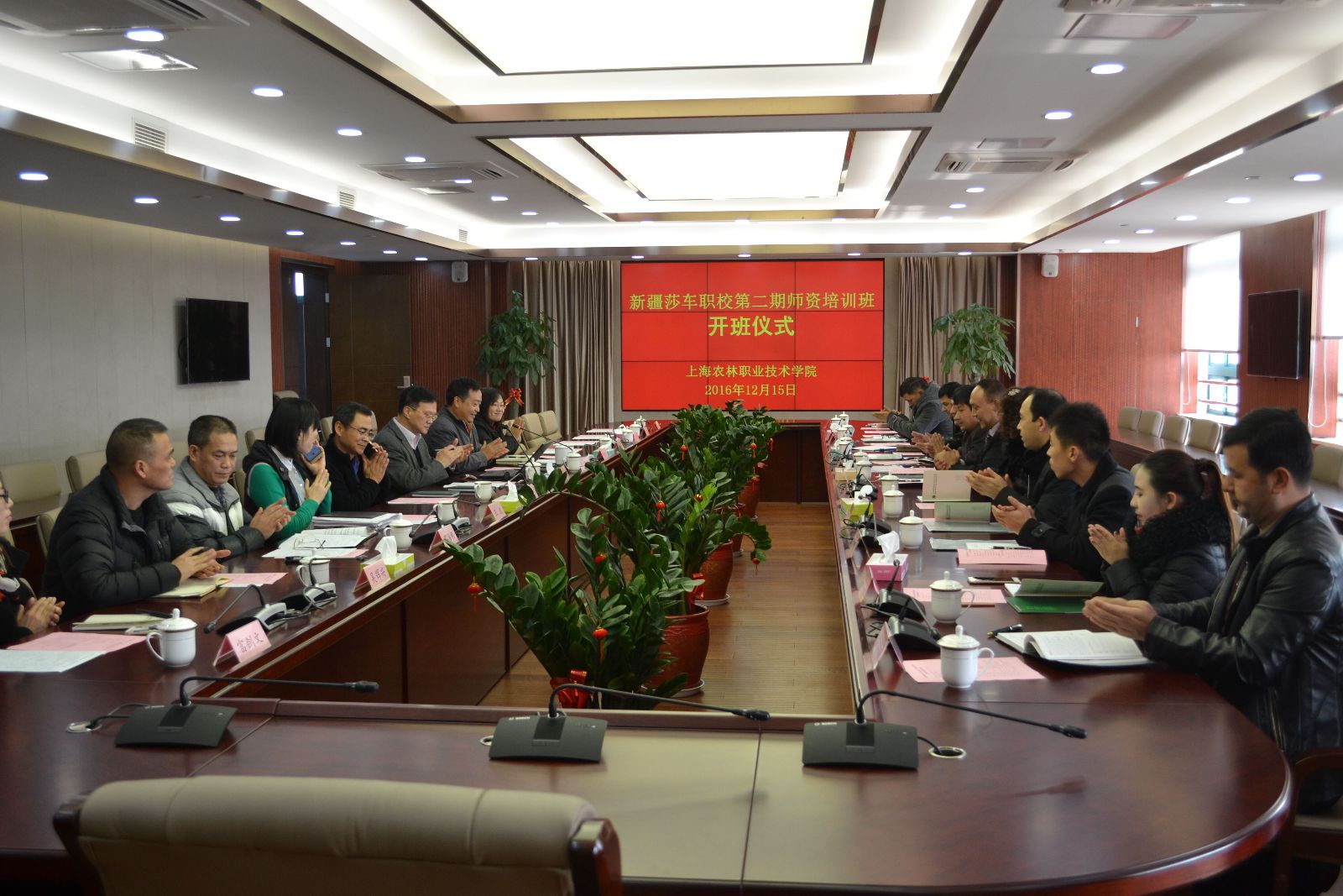 2016年12月15日上午,在综合楼第一会议室,学院对口支援新疆莎车县师资培训第二期开班。学院院长魏华、副院长谢锦平、市农校副校长王军亮、教务处处长王彤光、继教中心主任郁海根等相关部门负责人出席了开班仪式,会议由谢锦平主持。