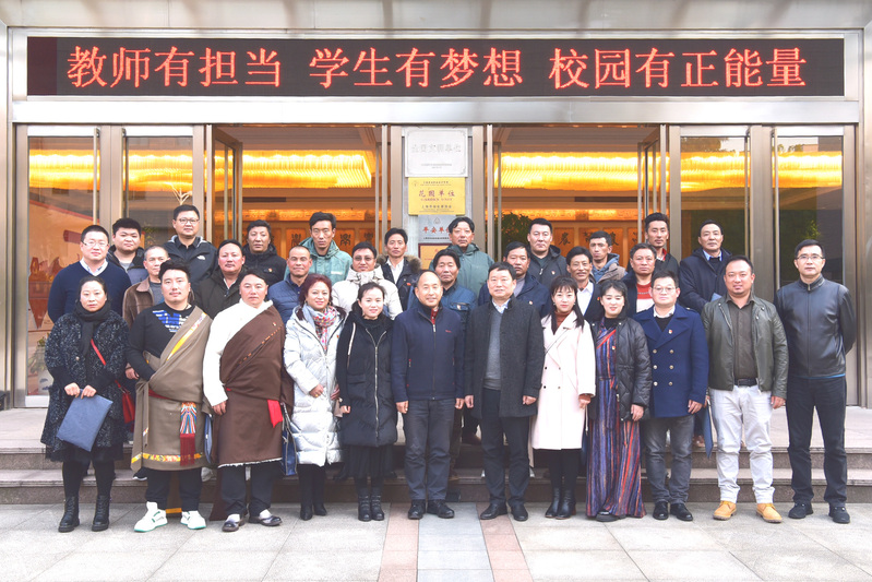 最后,藏族学员代表向学院领导敬献哈达。全体与会人员在综合楼前合影留念。