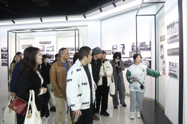 刘晶、陈伟杰老师分批带领新生参观校史馆及校园。