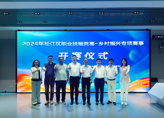 6月21日,2024年松江区职业技能竞赛—乡村振兴专项赛事开赛仪式在上海农林职业技术学院举行。区人力资源和社会保障局副局长马守亮,区农业农村委二级调研员沈根华,区市场监管局副局长杨彬,上海农林职业技术学院党委副书记、副院长邵阳出席仪式。
