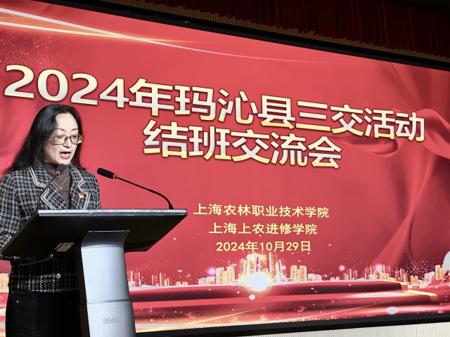 10月29日,在报告厅,举行了简短而隆重的结班交流会。继续教育学院沈悦院长对三交参访行程做了回顾。由中共玛沁县委组织部主办,上海农林职业技术学院指导,上海上农进修学院承办的“玛沁县交往交流交融”项目,采用现场观摩、学习交流、小组讨论等多种形式, 参观了中国共产党第一次全国代表大会会址和纪念馆,在嘉兴南湖革命纪念馆开展水上课堂,接受“红船精神”的洗礼;走访了中国首个以“两山”实践为主题的生态旅游乡村-安吉余村,考察了浙江省“红色根脉”强基示范村(社区)“茶乡第一村”龙井村的产业综合体,在中国竹博园及亚洲规模最大的竹品种基地,学习产业综合体运作模式,体验如何将农业与文化、生态、科研以及旅游相结合。此次活动内容充实,涵盖了乡村振兴的多个关键领域,学习了城乡融合发展的成功经验。