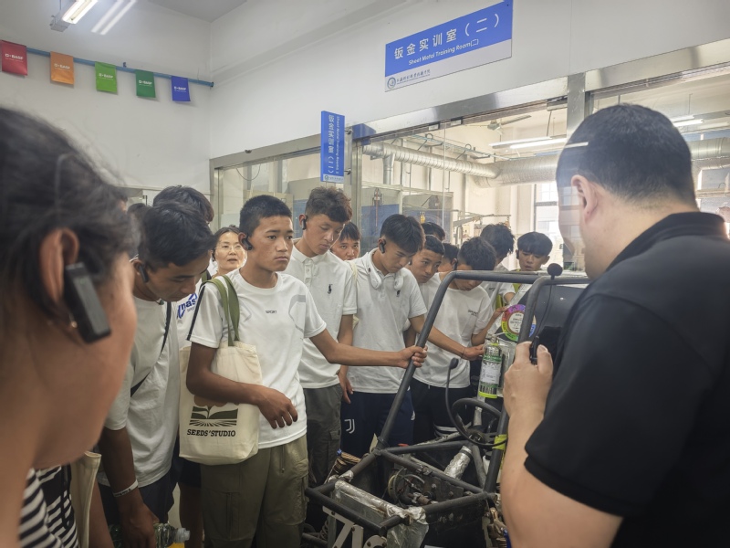 在上海市建筑工程学校老师陪同下,藏族师生进行了23号线地铁站点的参观,走进施工现场,亲眼见证这条“城市动脉”如何从蓝图变为现实,更直观地了解这项高科技工程。设施农技班土旦桑觉同学在座谈中表示:“工程师一辈子专注一件事的精神,正是我们要学习的职业信念。”“在三旺奇智(上海)信息科技有限公司参观时,我被先进的生产设备和高科技产品所吸引,在这里我明白了职业技能和市场需求紧密相连,只有掌握扎实的专业技能,才能在未来的职业道路上走的更远!”