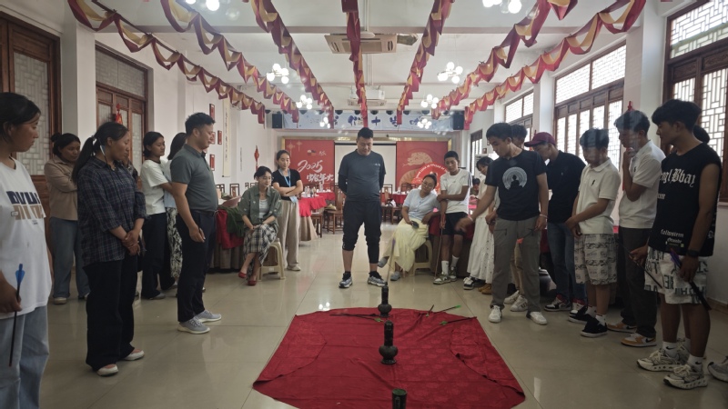 愚农庄园的非遗手作工坊成为交流亮点。同学们有序体验了射艺、礼义、酒筹等传统六艺活动,以“身临其境”的方式感受中华礼乐文化,在一射一放之间,学习古人的哲思与智慧,坊间回荡的阵阵笑声传递出文化的共鸣。在非遗手作工坊亲手制作草头饼,感受自然馈赠和劳动乐趣,同学们开心地说:“农业生产种植和采摘实操,让我们回归土地,体会到劳动的价值和生活的质朴!”